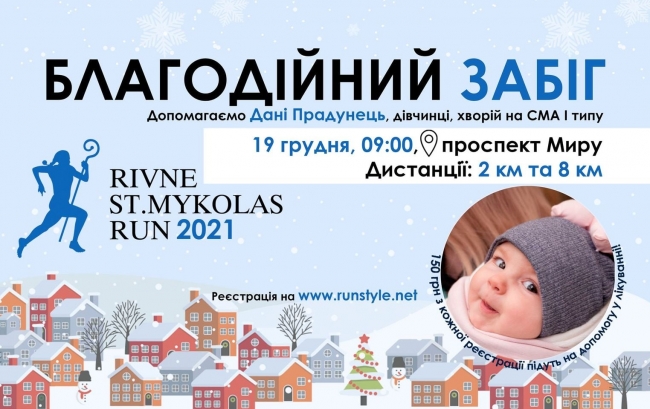 Рівнян запрошують долучитися до благодійного забігу «Rivne St.Mykolas Run 2021» на підтримку Дани Прадунець!