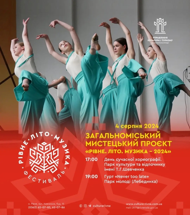 У міській раді Рівного нагадують, що проєкт “Рівне. Літо. Музика” триває. Ось, що пропонують глядачам сьогодні увечері у двох популярних зелених зонах міста – в парку Шевченка та у парку Молоді (Лебединка):