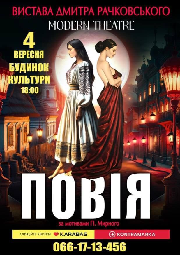 «Повія» – драматична вистава Дмитра Рачковського за мотивами однойменного роману майстра психологічної прози Панаса Мирного. Твір вважається одним із найкращих серед соціально-психологічних романів української літератури 19-го століття. Додати до цього сучасний режисерський підхід та професійну гру акторів – і отримаєте неймовірну постановку, пропустити яку – неможливо.