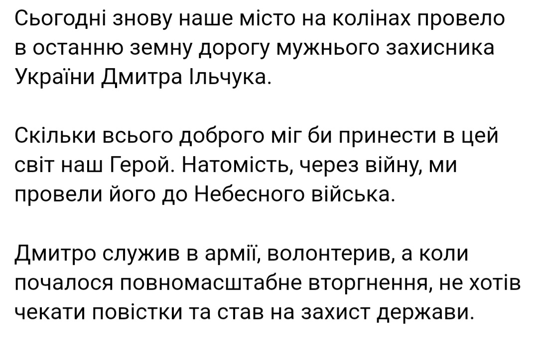 Сьогодні на майдані Незалежності в центрі Рівного захисника провели в останню путь, – повідомили у міській раді Рівного.