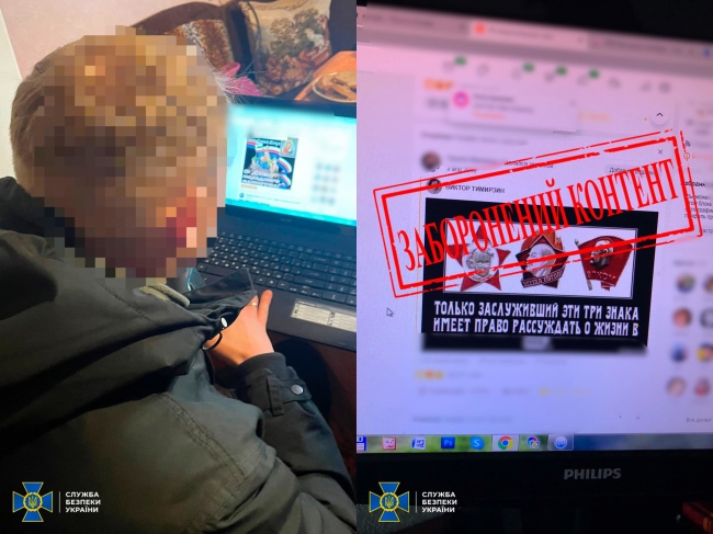 Співробітники СБУ встановили, що зловмисник, незважаючи на повномасштабне російське вторгнення на територію України, продовжував поширювати заборонену радянську символіку й лозунги.