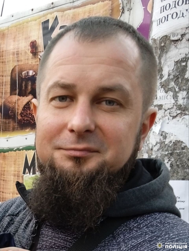 Прикмети: на вигляд зниклому 30-35 років, зріст приблизно 180 см, середньої тілобудови. Має коротке волосся та чорну бороду.