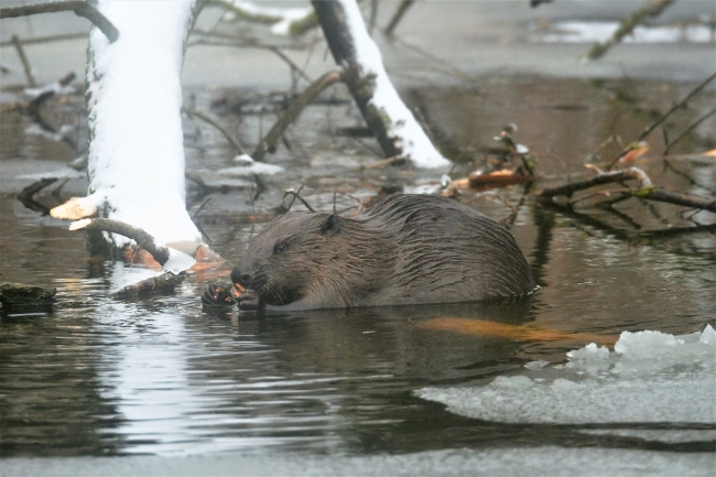 – Екзотичний для міста звір “господарює” у цій його недоторканій природній зоні вже більше десяти років. Фото зі слідами зубів гризуна зроблені в 2013-му, а самого звіра впіймав у кадр сьогодні. А ще – тут зазимувала незвично велика кількість дрібних водоплавних птахів – пірникоз малих, – до 15 особин!