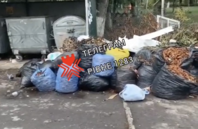 Відео опублікували в телеграм-каналі “Рівне 1283”. На відео чоловік за кадром каже, що знаходиться на вулиці Гайдамацькій і показує безліч мішків біля сміттєвих контейнерів.