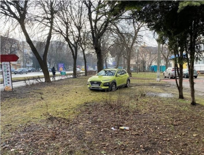 На ньому видно як водій на вулиці Київській полишив свій автомобіль. Це знищило газон.