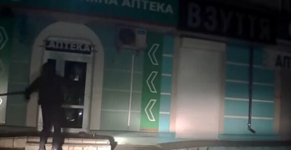 Рівнянин розбив цеглиною двері в аптеку на очах у патрульних (ВІДЕО)