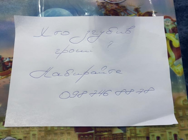 «Поверну віру у правильні вчинки. А якщо серйозно, то в під’їзді (Кобзарська 17/7) хтось згубив пристойну суму грошей. Поверну тому, хто назве точну суму. Маю надію, що то хтось із сусідів і власник швидко найдеться».