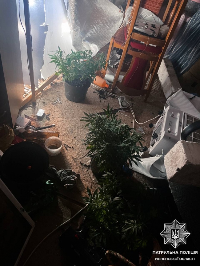 Увійшовши до квартири, спільно із дільничою поліцейською, патрульні побачили у горщику для квітів 7 кущів, схожих на коноплі, пристрої для її вживання, ймовірно, коноплі у подрібненому вигляді та гроубокс для її вирощування.