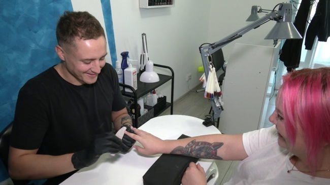 – Якось пішли я і моя мати просто скуплялись, зайшли в Будинок побуту. Там Валентина була, робила манікюр, вона зі стажем вже майстер. Мама робила в неї манікюр. Я спостерігав за цим процесом. Вона каже: «Тобі цікаво? Хочеш — спробуй». Я типу спробував, — розповів Суспільному майстер нігтьової індустрії Олександр Завгородній.
