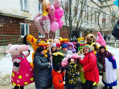 Вітали малюка герої казок та мультиків. Зокрема, Губка Боб, Свинка Пеппа, вовк та ведмідь.