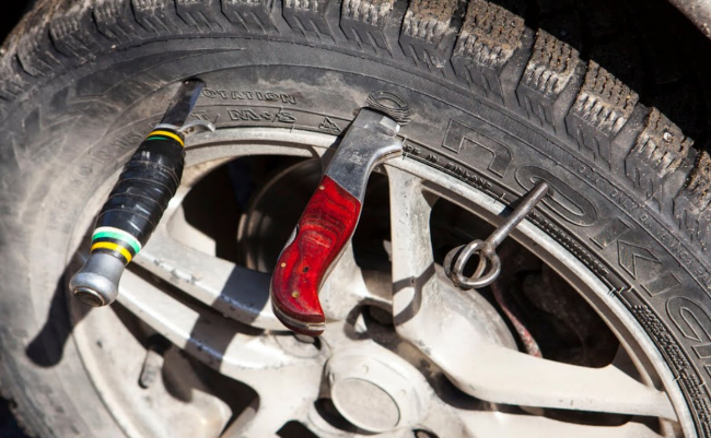 Однак коли повернулася, то виявила, що їй порізали усі чотири колеса.