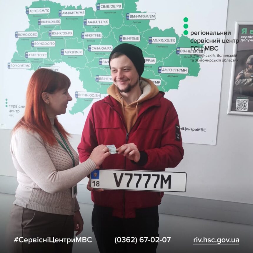 До сервісного центру МВС Рівненщини, звернувся Владислав, який вирішив підкреслити індивідуальність своєї автівки, замовивши у кабінеті водія номер V7777M, де