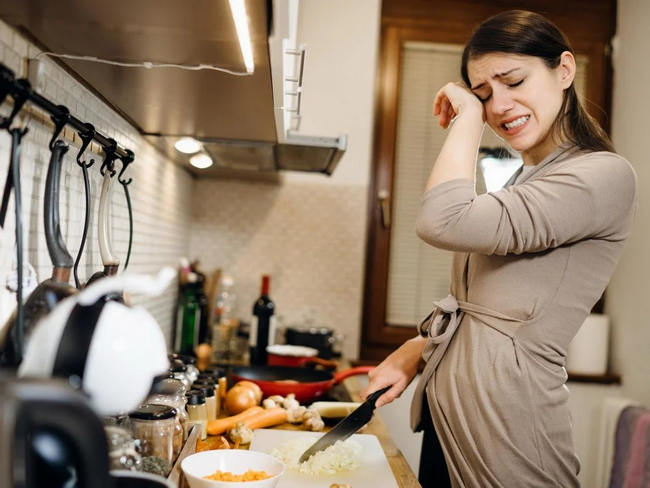 Під час чищення та нарізання цибулі одним із найважливіших аксесуарів є дуже гострий ніж. Тупий, злегка іржавий інструмент — найстрашніше, що може статися при різанні. Сильний тиск на овоч замість плавного різання змушує цибулю виділяти сік, що містить сірку. Це подразнює очі й викликає сльозотечу, а іноді і подразнення носа. Це призводить до чхання та очищення носових пазух.