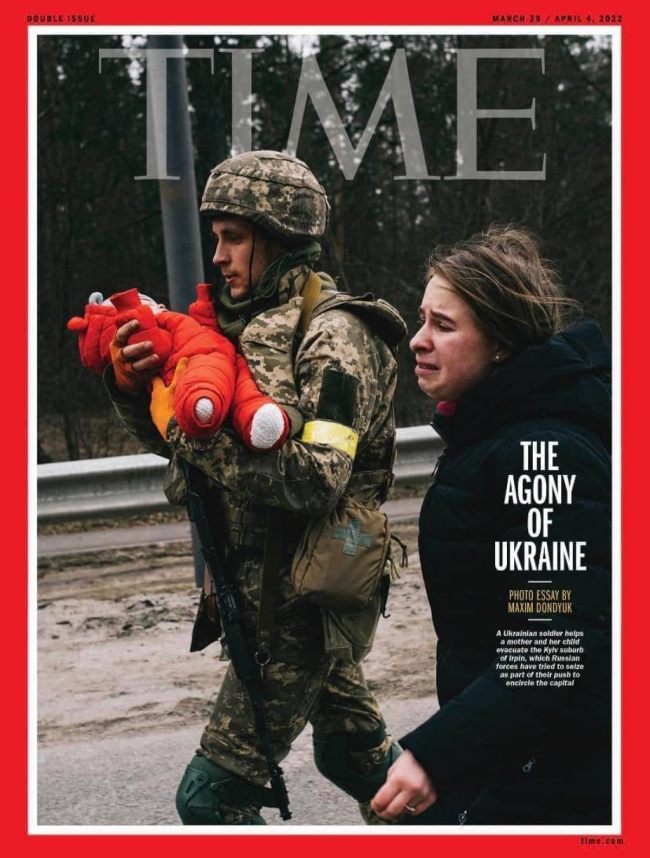 Жінка на обкладинці – Юлія Павлюк, вона ділилася спогадами з мирного життя у рідному місті: показала журналістам фото з прогулянок у парку, знімками сусідніх будинків, які згодом окупанти.