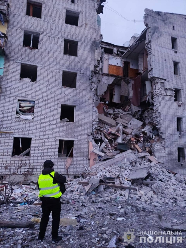 Пошкоджень зазнав п’ятиповерховий багатоквартирний будинок, в якому повністю зруйновано один під’їзд.