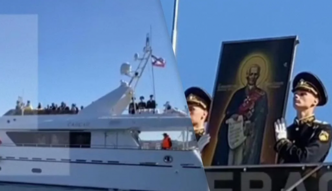 Окупанти возили «ікону адмірала» катером. На їх думку, це врятує кораблі від атаки українських дронів.