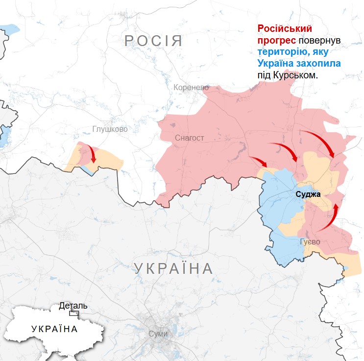 Нагадаємо, що утримання Курщини пояснювалося можливістю обміняти її на окуповані українські території на переговорах з росіянами.