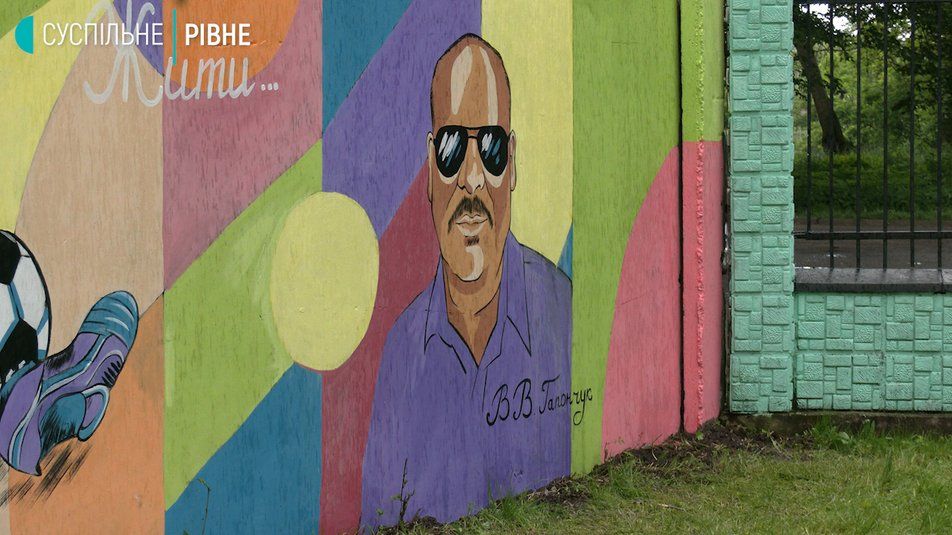 В’ячеслав Гапончук був директором дитячо-юнацької спортшколи у Гощі впродовж тринадцяти років. Вшановуючи його пам’ять, автори обирали для нанесення на огорожу світлі і яскраві барви.