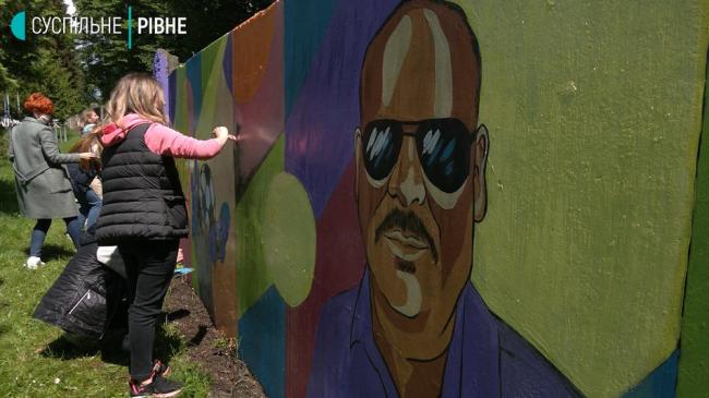 – Несе те світло, яке мав В’ячеслав В’ячеславович, його позитив і хороше ставлення до людей. Цей ескіз розроблений в стилі поп-арт і замальовується без розтяжок, тільки з додаванням чорного та білого кольорів. Більше 20-ти кольорів ми використали і таке величезне відро фарби, розхідні матеріали, пензлики, – додає авторка.