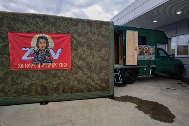 Мобільний польовий храм будуть возити по фронту завдяки автомобілю. У авто є холодильник, душ, умивальник, біотуалет та два спальних місця, призначені для водія та священика.