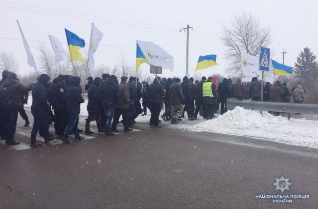 Понад сотня людей безперервно ходить пішохідним переходом. Так вони протестують проти внесених змін до Податкового кодексу України, вважаючи, що вони призведуть до падіння закупівельних цін на окремі види сільськогосподарської продукції. На місці події працюють поліцейські, забезпечуючи охорону громадського порядку. Поліцейським вдалося домовитися з учасниками акції, щоб пропускали періодично транспорт, аби не допустити утворення великих заторів на дорозі.