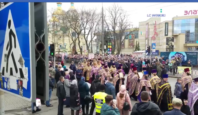 Задля хресної ходи рух Соборною частково обмежили. Супроводжували священиків та парафіян поліцейські та члени громадських формувань.