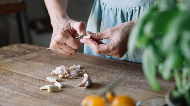 Перед тим як чистити часник, натріть руки звичайною соняшниковою чи оливковою олією. Вона створює захисну плівку, і запах майже не встигає ввібратись. Якщо забули, олія допоможе його зняти вже після, але обов’язково потім змийте її з милом.
