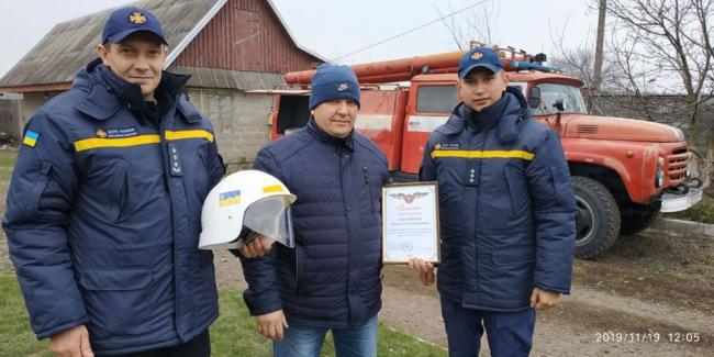 Окрім грамоти, рятувальники презентували волонтеру бойовий одяг, пожежну каску та рукави.