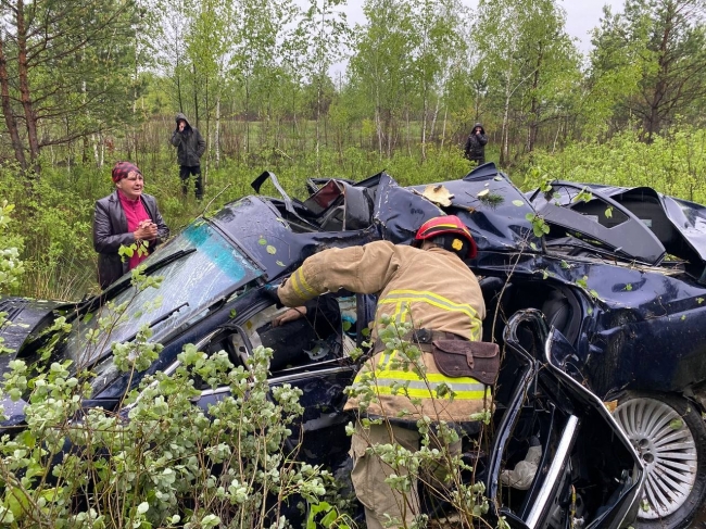 Рятувальники побачили, що автомобіль марки БМВ 745 злетів з траси у кювет, збив кілька дерев та перекинувся приблизно за 20 метрів від проїжджої частини дороги.