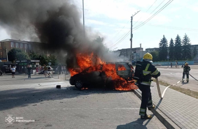 – За чотири хвилини рятувальники вже були на місці виклику. На парковці поблизу місцевого супермаркету вогнем був повністю охоплений легковий автомобіль марки «Opel Zafira». На гасіння оперативно було подано вогнегасячі речовини. За десять хвилин пожежу було ліквідовано, – розповіли у ГУ ДСНС Рівненщини.
