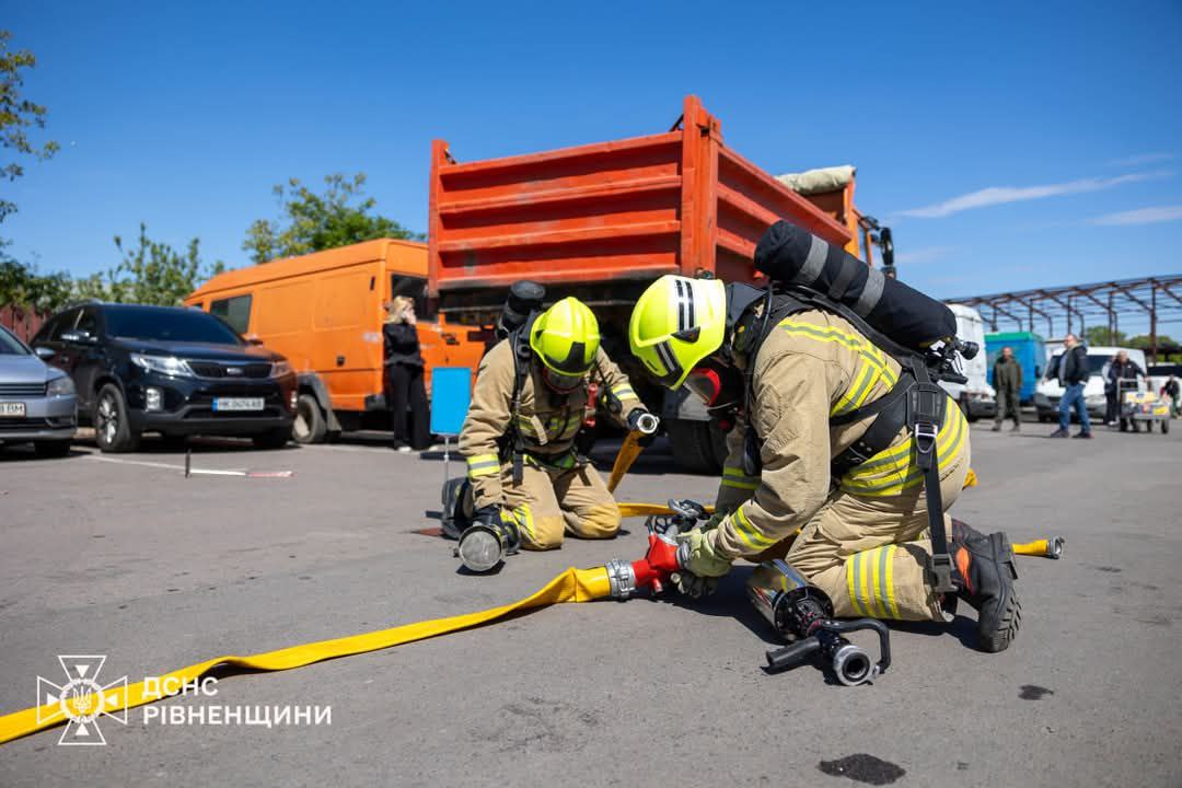 Як розповів перший заступник голови ОВА Сергій Подолін, рятувальники провели пожежно-тактичні навчання. За легендою, на місці пожежі було багато людей і припаркованих автомобілів. Місце – поблизу ринку.