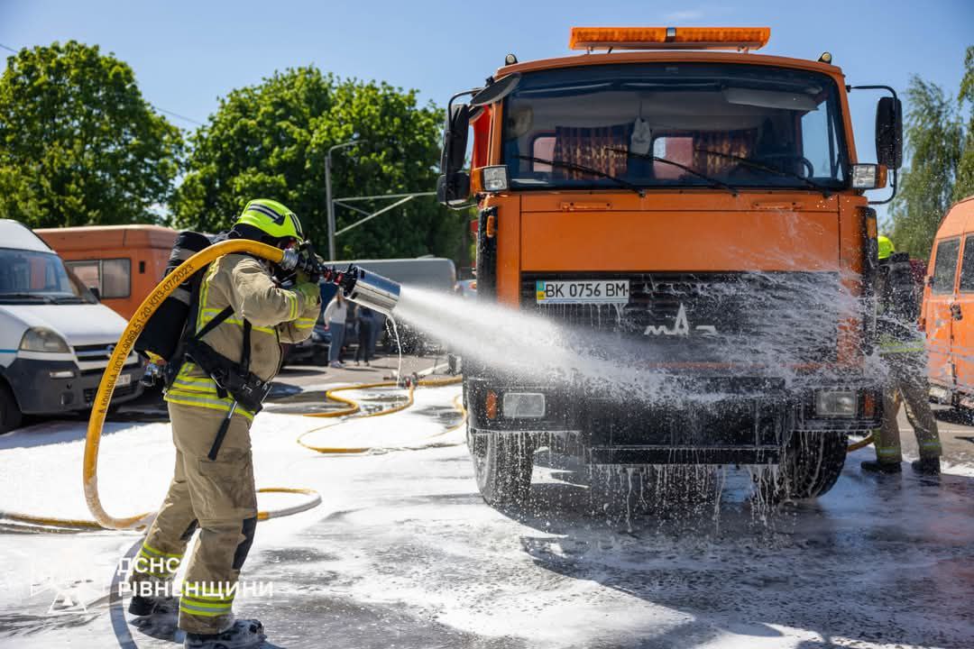– За сценарієм загорілися лакофарбові вироби в вантажному відділенні автомобіля, всередині якого перебував водій. Умовного постраждалого винесли з небезпечної зони та передали медикам. Після цього пожежу успішно “ліквідували”.