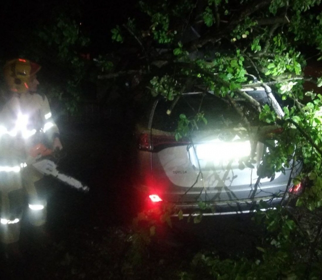 Рятувальникам надійшло повідомлення про повалене дерево на автомобілі марок Mazda та Volkswagen Tigua.