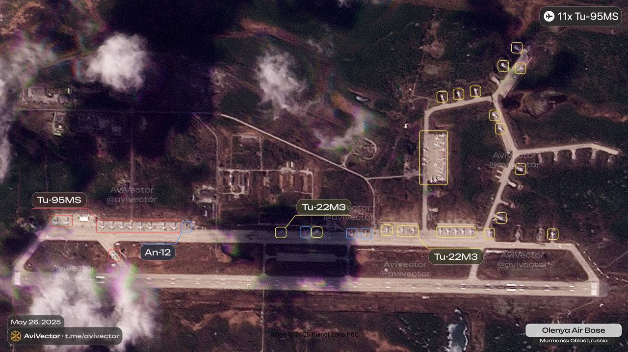 СБУ відзвітувала, що внаслідок операції павутина, українські дрони пошкодили 41 літак на аеродромах «Оленья» (Мурманська область), «Бєлая» (Іркутська область), «Іваново» (Іванівська область) і «Дягілєво» (Рязанська область).