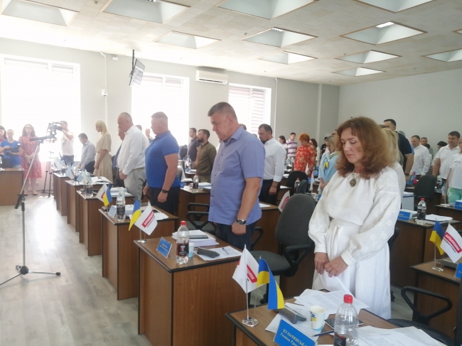 Сьогоднішня сесія розпочалася із запізненням, зате у залі засідань зібралися більшість депутатів. Приїхав навіть головний архітектор Рівного Дмитро Котляров, який захищає країну у лавах ЗСУ.