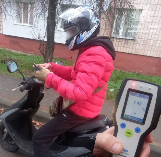 Учора патрульні на вулиці Березневій у Сарнах зупинили скутер Honda Dio, водій якого рухався без номерних знаків. За кермом перебував 52-річний чоловік. Під час спілкування інспектори виявили у нього ознаки алкогольного сп’яніння.