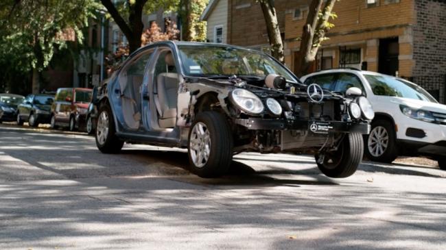Остання серія експериментів – високі та широкі “лежачі поліцейські”, які лежать перед школами та пішохідними зонами. При проїзді на невеликій швидкості машина трохи підскакує – працює вся підвіска. А на великій швидкості колеса навіть чіпляють колісні арки. Машина отримала більший удар, відчинився навіть “бардачок” в салоні. Колеса відриваються від землі, а “Мерседес” важко падає на асфальт. При цьому двигун та глушник помітно коливаються. Тож цей вид “поліцейських” найбільш небезпечний для авто. Однак проїзд жодного з них не може зашкодити машині.