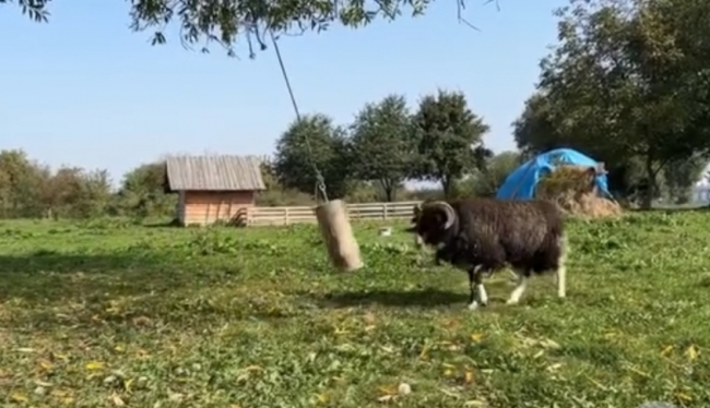– Бося та боксерська груша. Зробили дитині розвагу, щоб дурне в голову не лізло, – так у парку історичної реконструкції Остивця описали іграшку для одного з найновіших своїх мешканців – барана Босі.