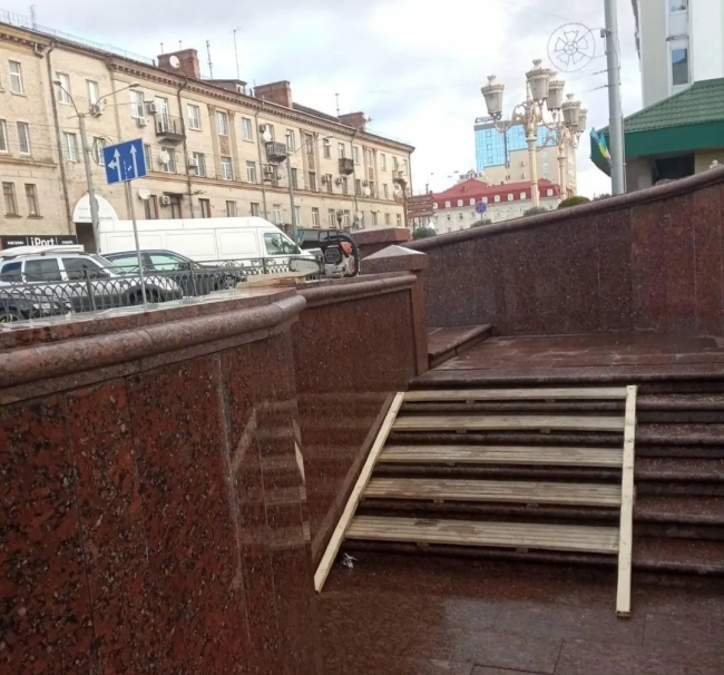 Аби уникнути травмувань під час снігопадів та ожеледиці працівники Тресту зеленого господарства встановили спеціальні дерев’яні трапи на сходинках у місті.