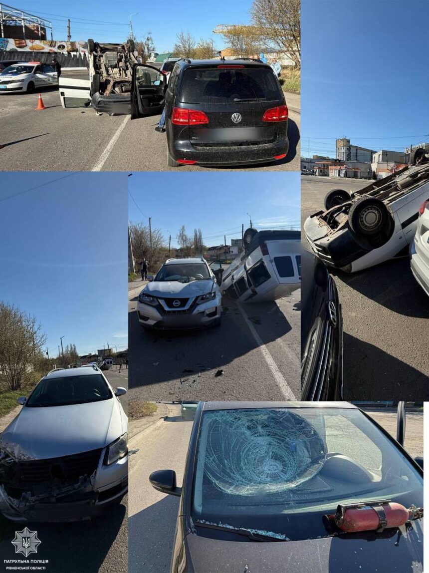 – У результаті зіткнення автомобіль Citroën перекинувся та зіткнувся з автомобілем Nissan. Nissan по інерції в’їхав у автомобіль Volkswagen, який знаходився позаду та зупинився, щоб повернути ліворуч, – розповіли у патрульній поліції Рівненщин.
