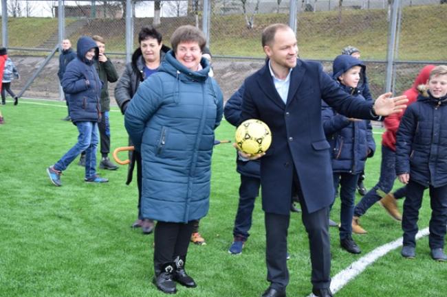 Прес-служба Рівненської РДА повідомляє, що керівники району подарували футбольні м’ячі школярам. Незважаючи на дощову погоду, діти вирішили випробувати нове поле і зіграли там разом із гостями у футбол.