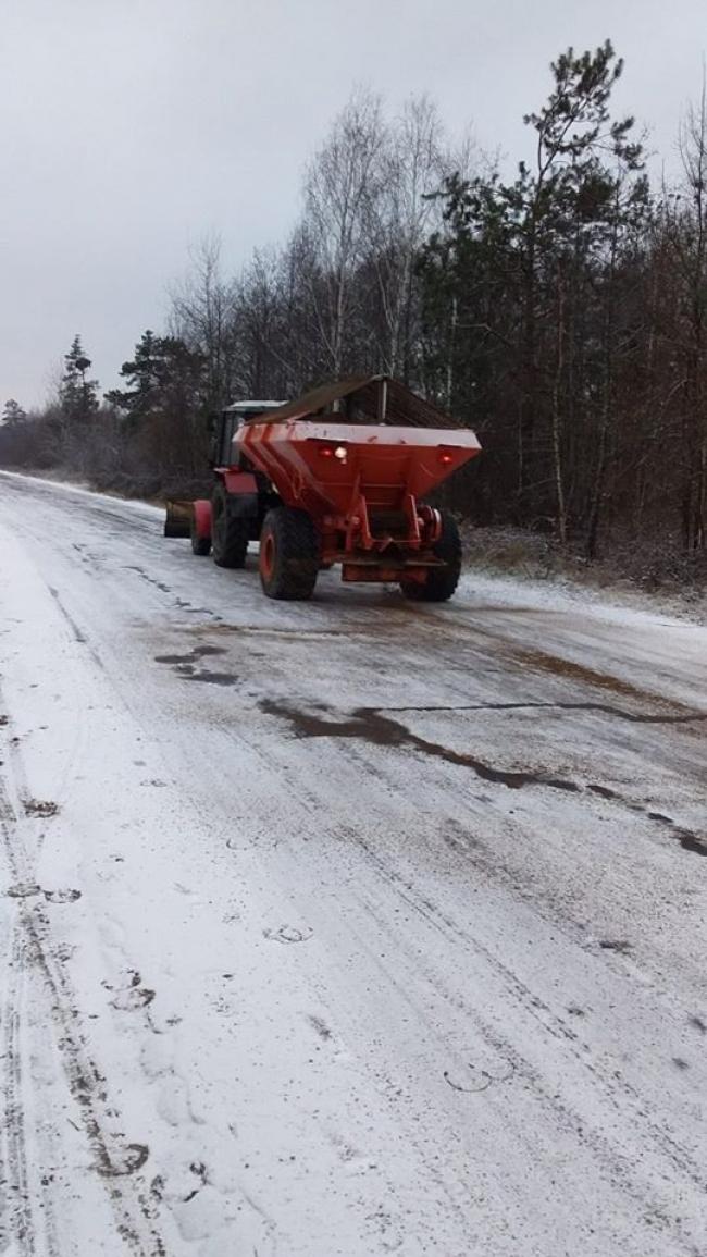 Зараз техніка працює у трьох районах області: Рокитнівському, Сарненському та Березнівському. Трасу "Київ-Ковель-Ягодин", тобто "варшавку", вже посипають, щоб не було ожеледиці..
