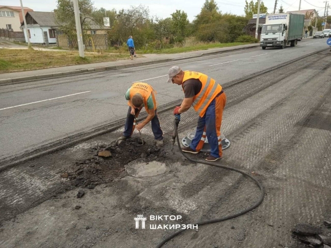 Наразі бригади міськШЕУ ліквідовують ямковість на перехресті вул. Чорновола-Басівкутська-Миколи Карнаухова. Також продовжується аварійний ямковий поточний ремонт на вул. Басівкутській. Шляховики вирізали дорожні карти, які після цього заасфальтують.