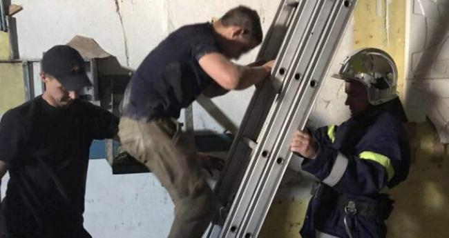 Рятувальники 17-ї державної пожежно-рятувальної частини за допомогою висувної пожежної драбини зняли чоловіка зі стелі.