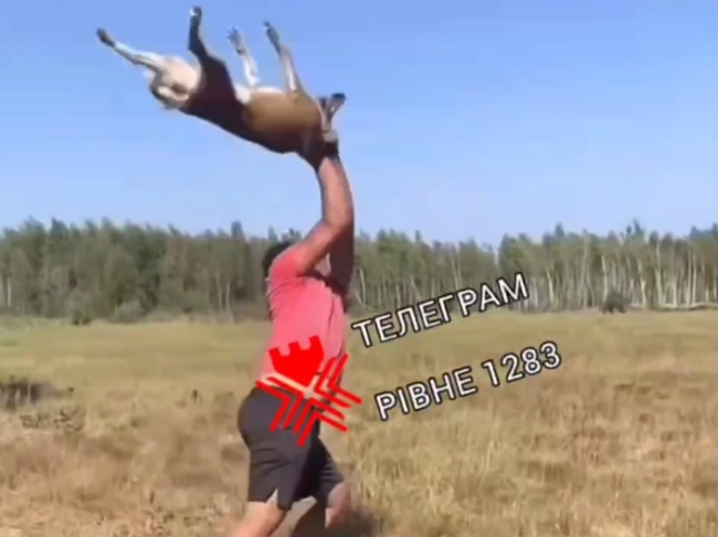 На ньому видно те, як місцевий житель бере собаку за голову та кидає об землю.