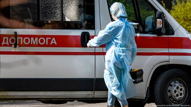 На виклик виїхала лікарська бригада Дубенської станції екстреної медичної допомоги у захисному одязі.