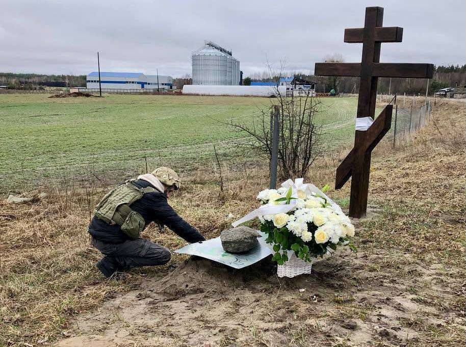 – Міша з Рівненщини, але як почалася війна, то волонтером їздив бусом в Гостомель, возив туди речі та продукти, а по дорозі назад, вивозив звідти людей. Близько місяця тому, зв’язок із Мішею обірвався, і Міша більше не виходив на контакт. Тепер, після звільнення цих територій, хлопці односельчани (на фото), які теж зараз волонтерять, знайшли його спалений бус (точніше, подзвонила поліція та сказала де він), а поряд Мішину могилу. Мішу поховали місцеві селяни з села, біля якого його було вбито. Ось так і похований, при дорозі.