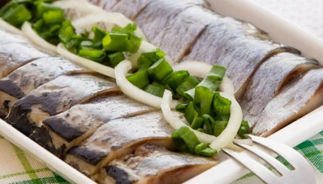 Риба морська. Я купую у вакуумній упаковці, вона там особливо жирна. Оселедець або скумбрія. Це легкозасвоюваний білок, таурин, який дає енергію, запобігає злипанню тромбоцитів, бере участь в утворенні жовчі, сприяє синтезу нейронів. А також омега-3 жири, холін — мають антисклеротичну дію; містять йод, який сприяє виробленню гормонів щитовидної залози.