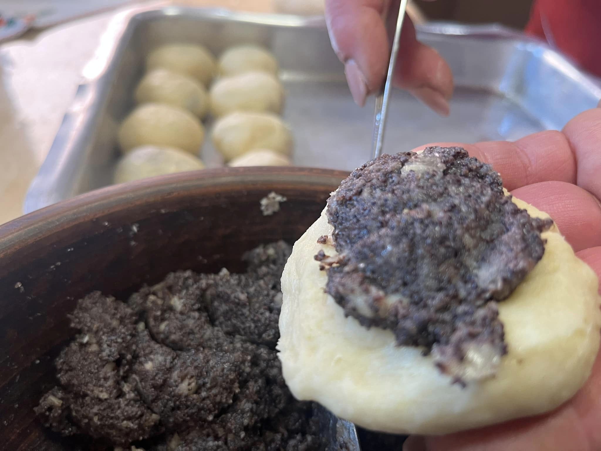 Тут господиня Інна Бурмай показала, як готує традиційні для свого краю пісні пиріжки із квасоляно-маковою начинкою.