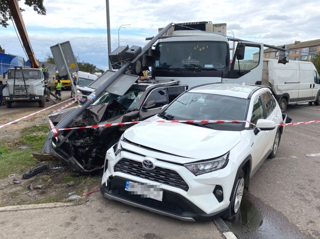 Нагадаємо, 23 вересня у селі Біла Криниця 26-річний житель Львівської області, водій вантажівки допустив зіткнення із трьома автомобілями, що зупинилися перед регульованим пішохідним переходом на заборонний сигнал світлофора